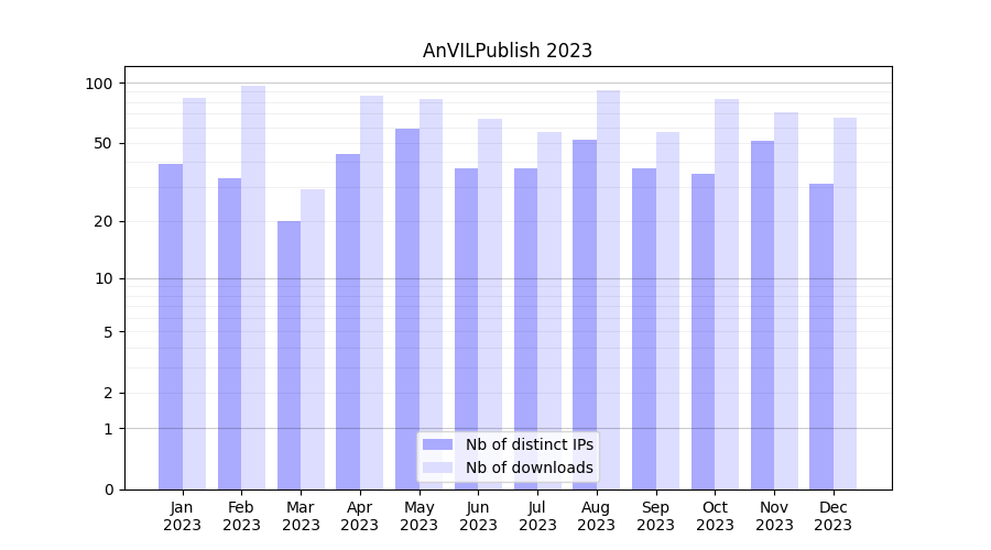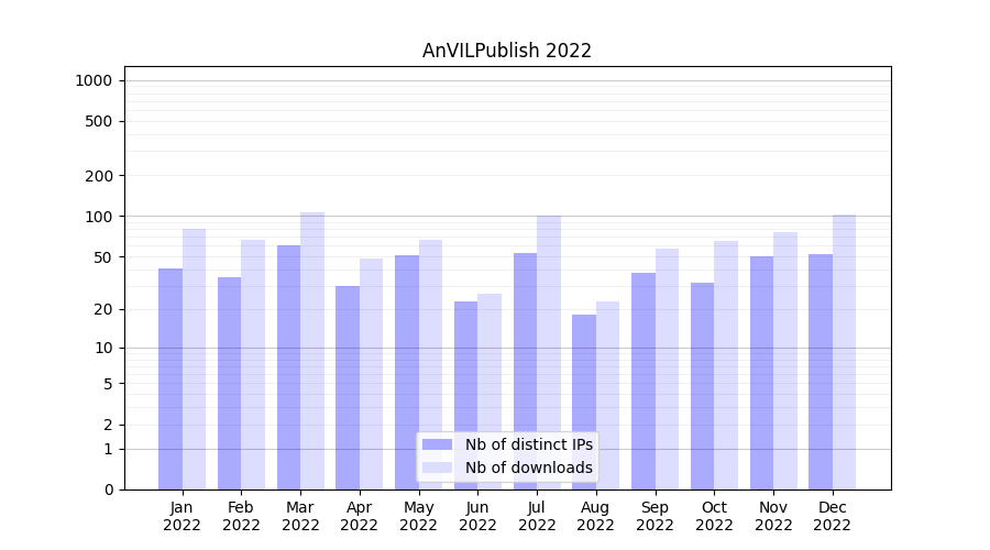Month | Nb of distinct IPs | Nb of downloads |