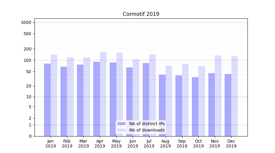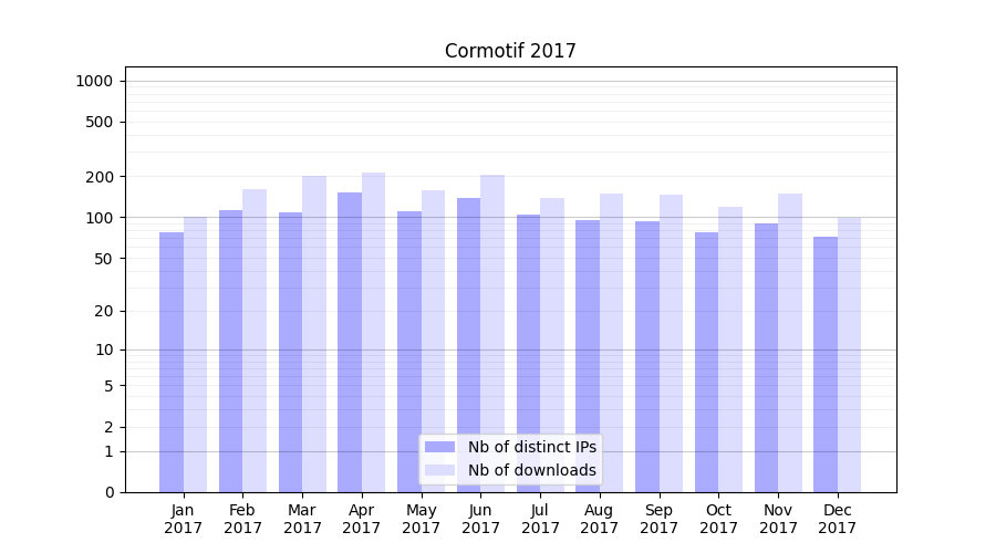 Month | Nb of distinct IPs | Nb of downloads |