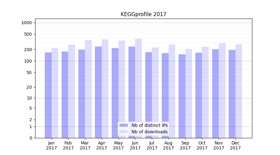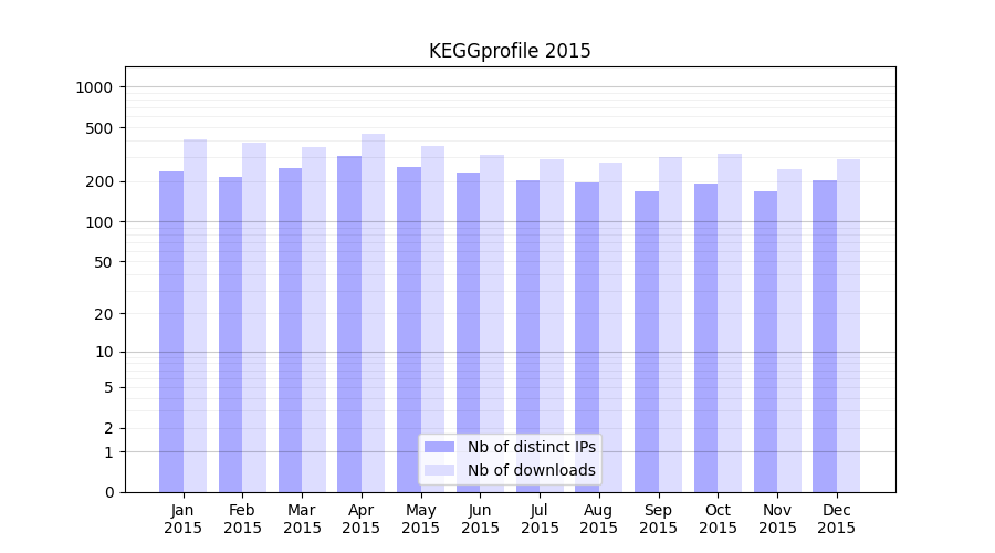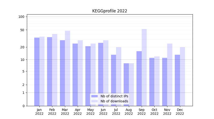 Number of downloads for software package KEGGprofile, year by year, from 2025 back to 2014 (years with no downloads are omitted):