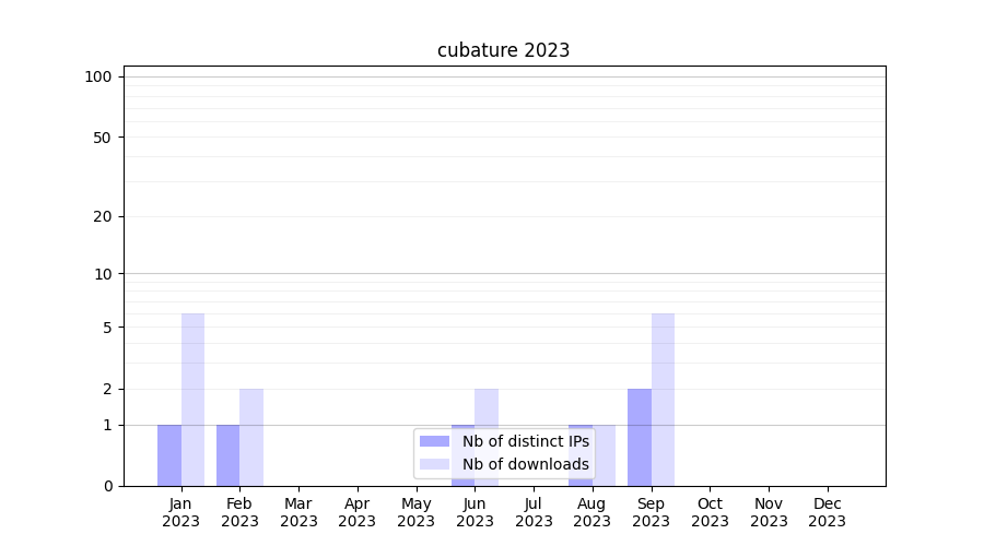 Number of downloads for software package cubature, year by year, from 2025 back to 2014 (years with no downloads are omitted):