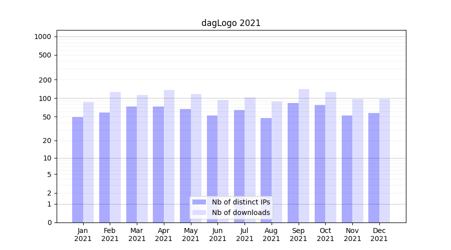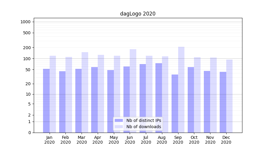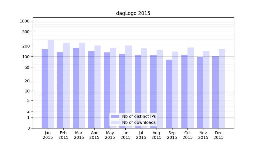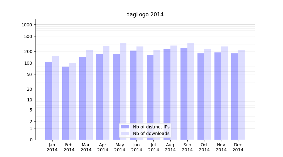 Number of downloads for software package dagLogo, year by year, from 2025 back to 2014 (years with no downloads are omitted):
