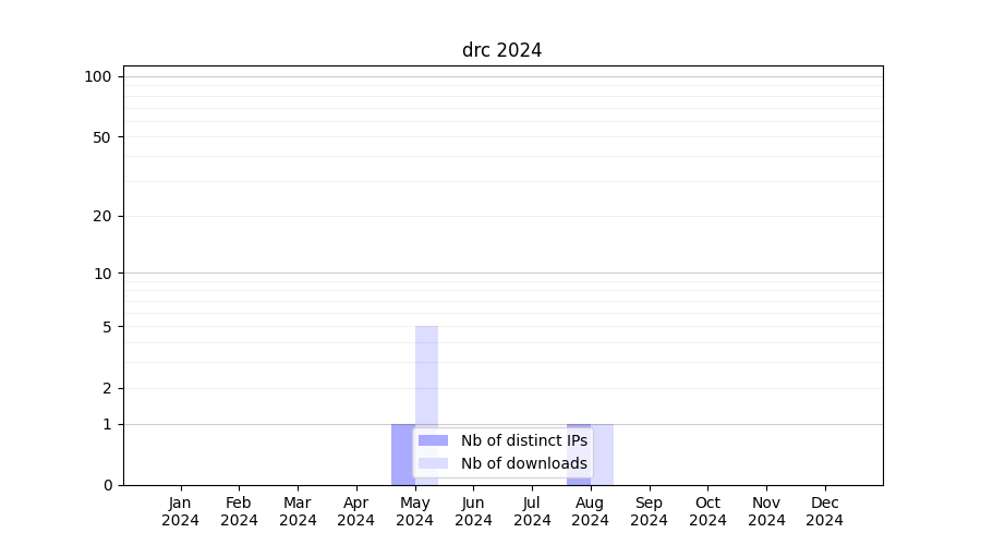Number of downloads for software package drc, year by year, from 2025 back to 2014 (years with no downloads are omitted):