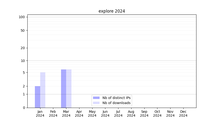 Number of downloads for software package explore, year by year, from 2025 back to 2014 (years with no downloads are omitted):