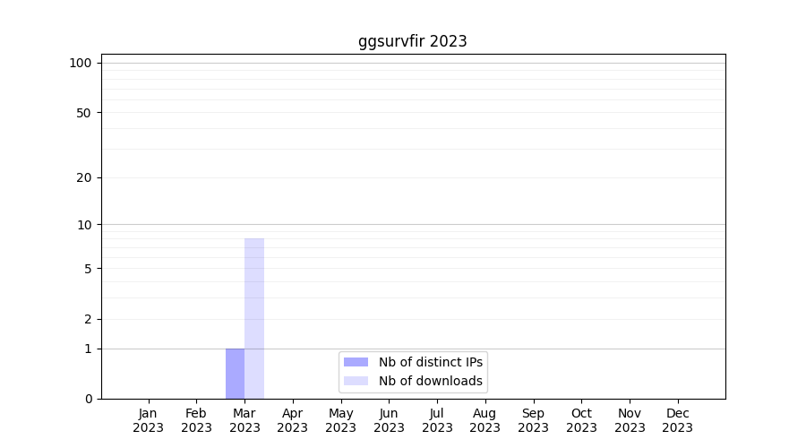 Number of downloads for software package ggsurvfir, year by year, from 2025 back to 2014 (years with no downloads are omitted):