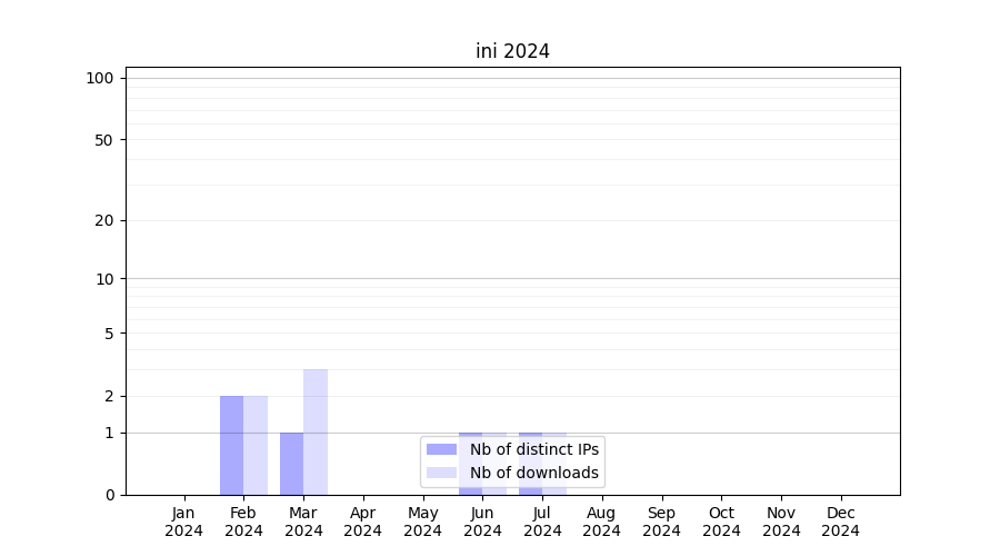 Number of downloads for software package ini, year by year, from 2025 back to 2014 (years with no downloads are omitted):