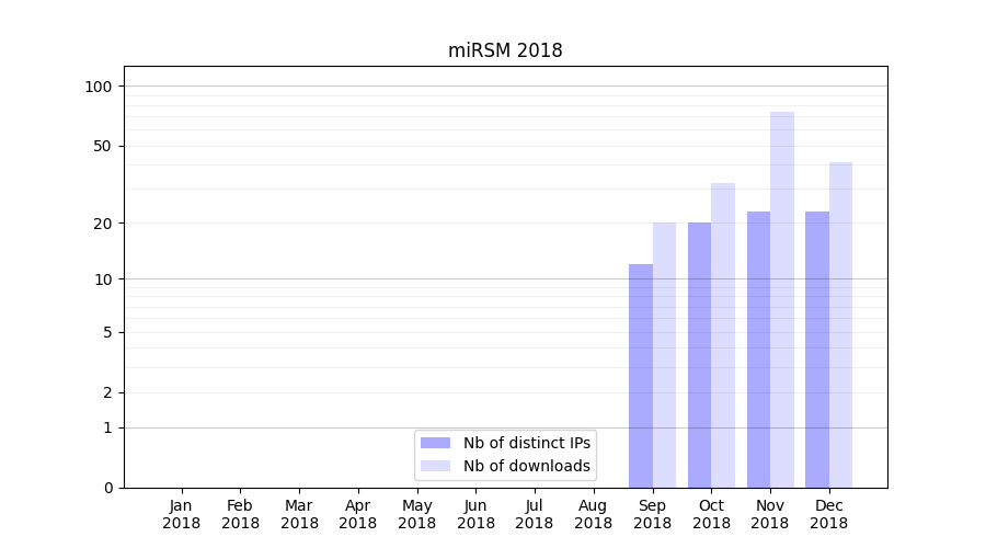 Month | Nb of distinct IPs | Nb of downloads |
