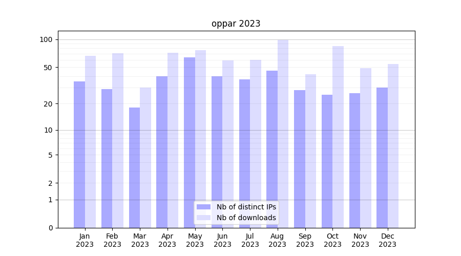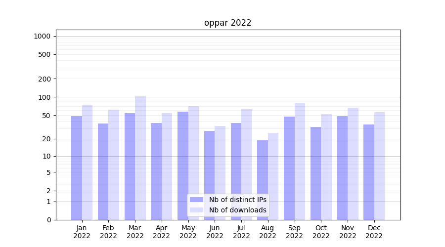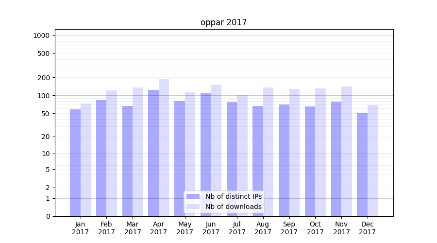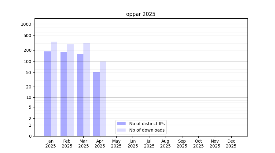 Number of downloads for software package oppar, year by year, from 2025 back to 2014 (years with no downloads are omitted):