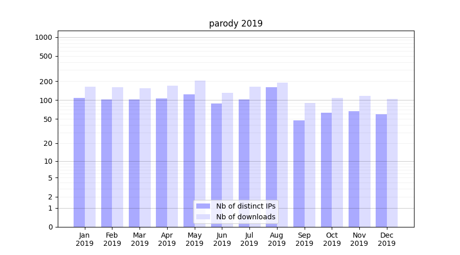 Month | Nb of distinct IPs | Nb of downloads |