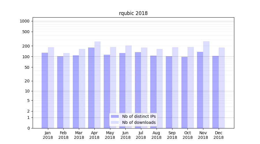 Number of downloads for software package rqubic, year by year, from 2025 back to 2014 (years with no downloads are omitted):