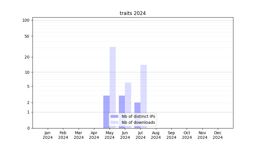 Number of downloads for software package traits, year by year, from 2025 back to 2014 (years with no downloads are omitted):
