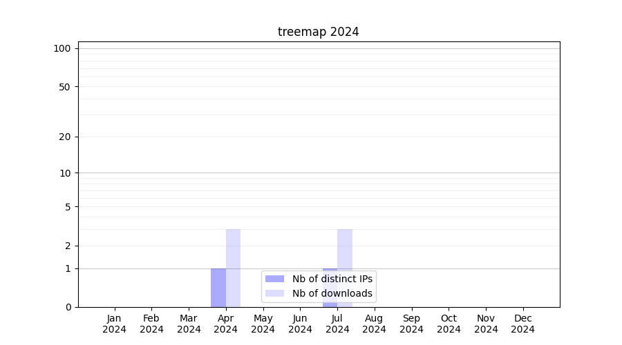 Number of downloads for software package treemap, year by year, from 2025 back to 2014 (years with no downloads are omitted):