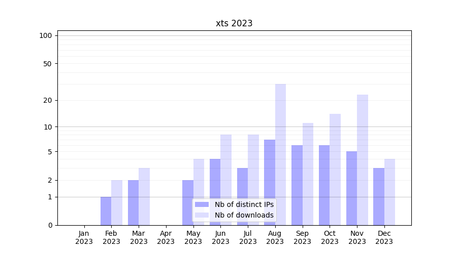 | Month | Nb of distinct IPs | Nb of downloads |