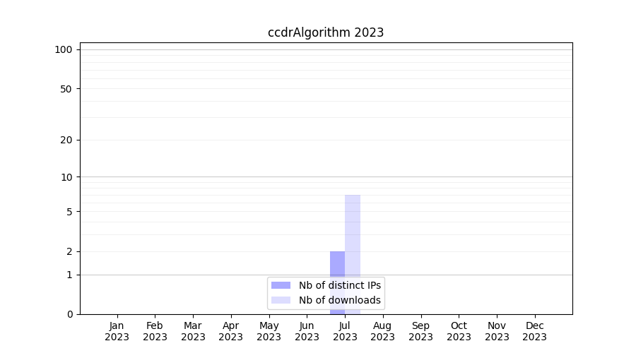 Number of downloads for experiment package ccdrAlgorithm, year by year, from 2025 back to 2014 (years with no downloads are omitted):