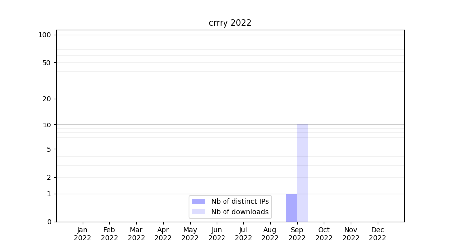 Number of downloads for experiment package crrry, year by year, from 2025 back to 2014 (years with no downloads are omitted):