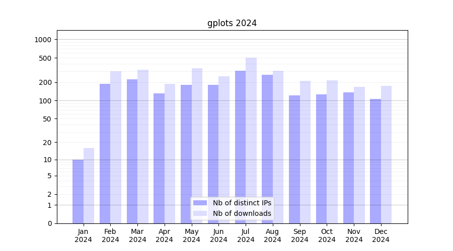 Month | Nb of distinct IPs | Nb of downloads |