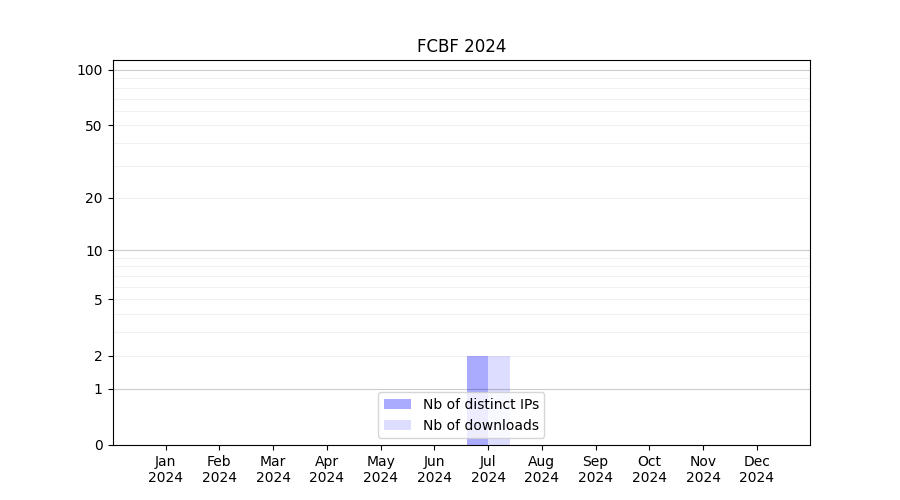 Number of downloads for workflow package FCBF, year by year, from 2025 back to 2015 (years with no downloads are omitted):