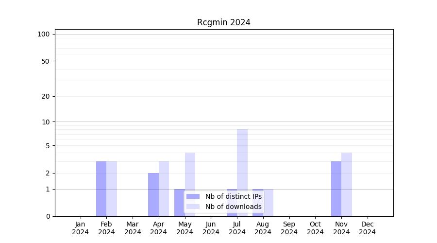 Number of downloads for workflow package Rcgmin, year by year, from 2025 back to 2015 (years with no downloads are omitted):