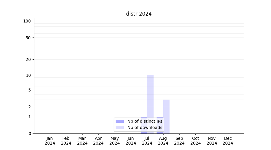 Month | Nb of distinct IPs | Nb of downloads |