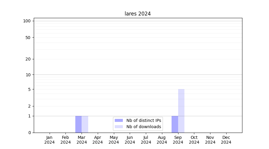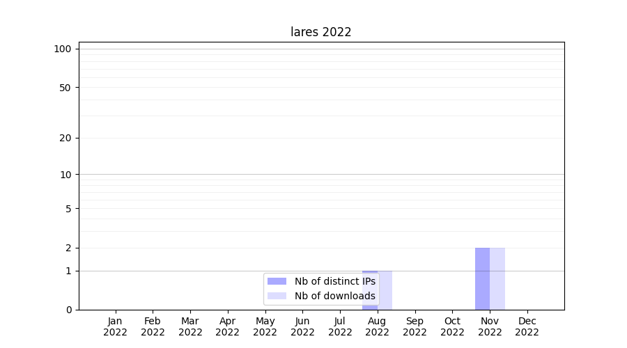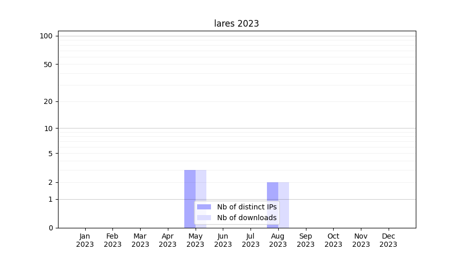Number of downloads for workflow package lares, year by year, from 2025 back to 2015 (years with no downloads are omitted):