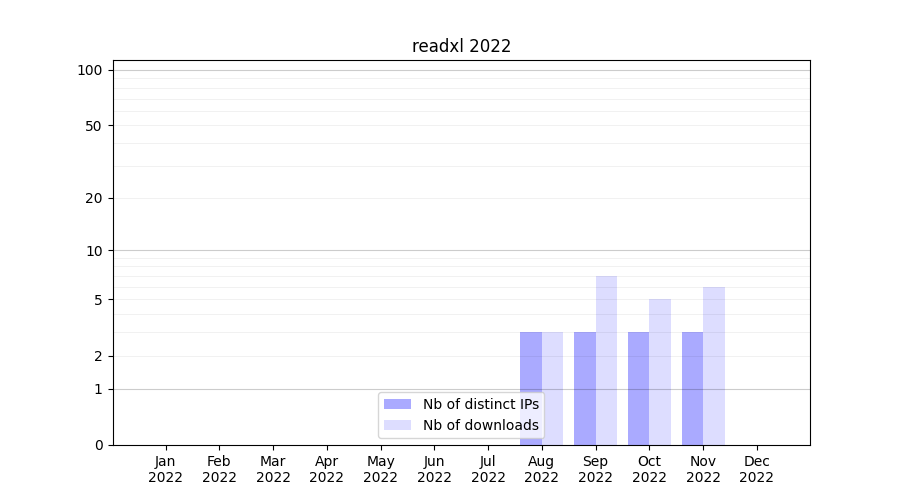 Month | Nb of distinct IPs | Nb of downloads |