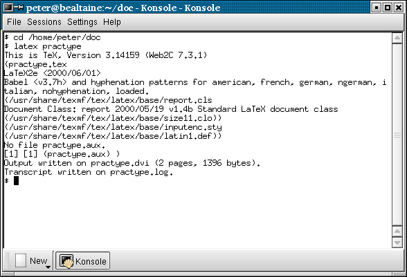 4.1.2 Running LATEX from a command windowThis is worth practising even if you normally use a GUI, so that you understand what it does. See Figure 4.1 for an example.