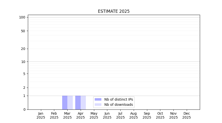 Number of downloads for software package ESTIMATE, year by year, from 2025 back to 2014 (years with no downloads are omitted):