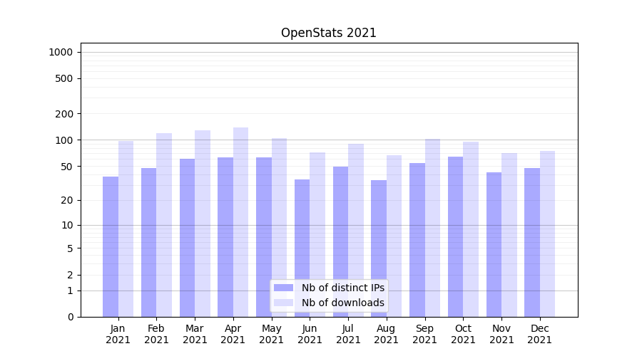 | Month | Nb of distinct IPs | Nb of downloads |