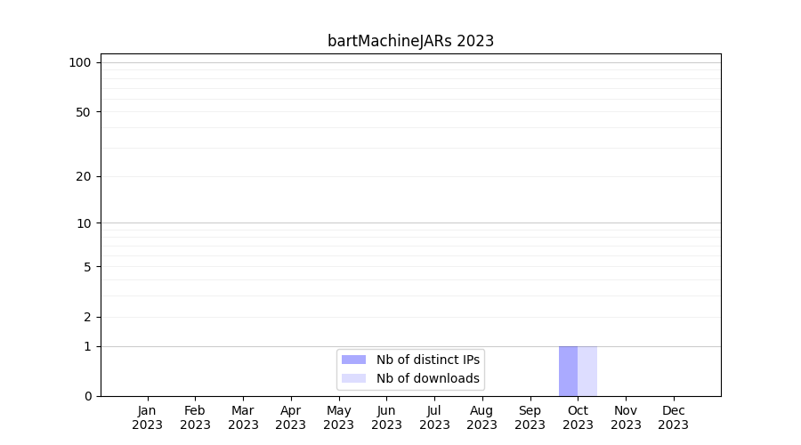 Number of downloads for software package bartMachineJARs, year by year, from 2025 back to 2014 (years with no downloads are omitted):