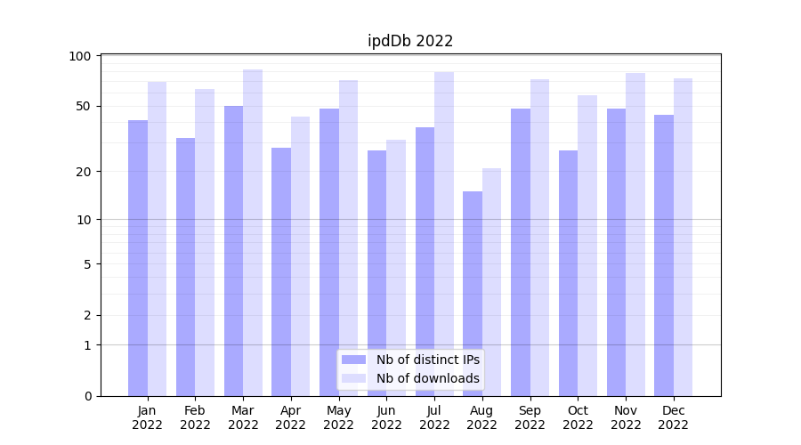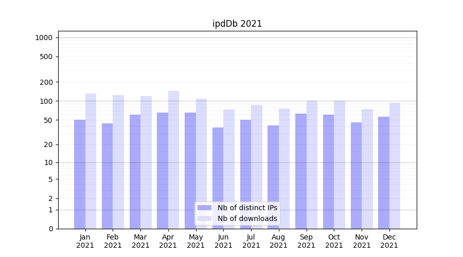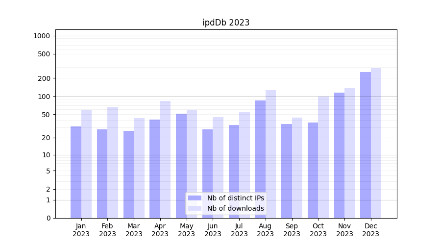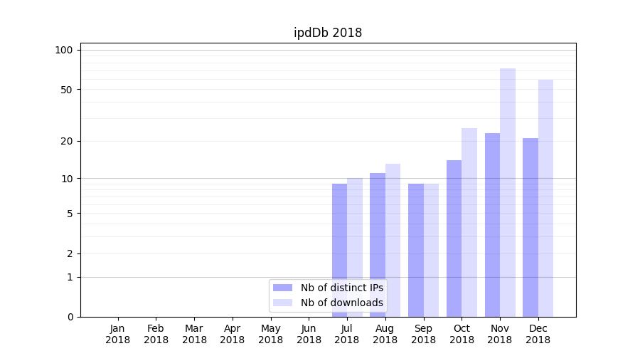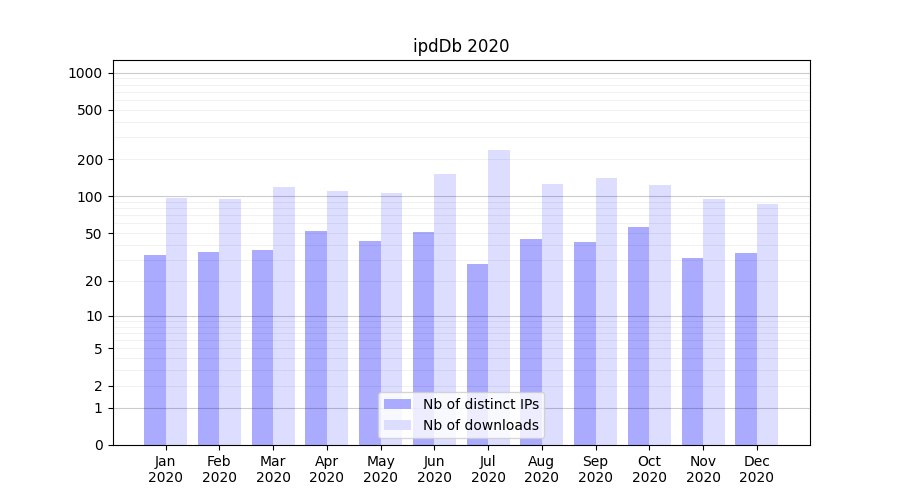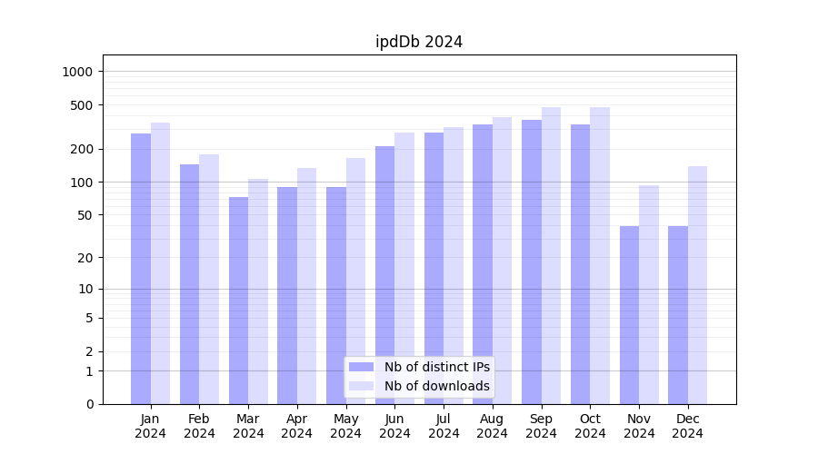 Number of downloads for software package ipdDb, year by year, from 2025 back to 2014 (years with no downloads are omitted):