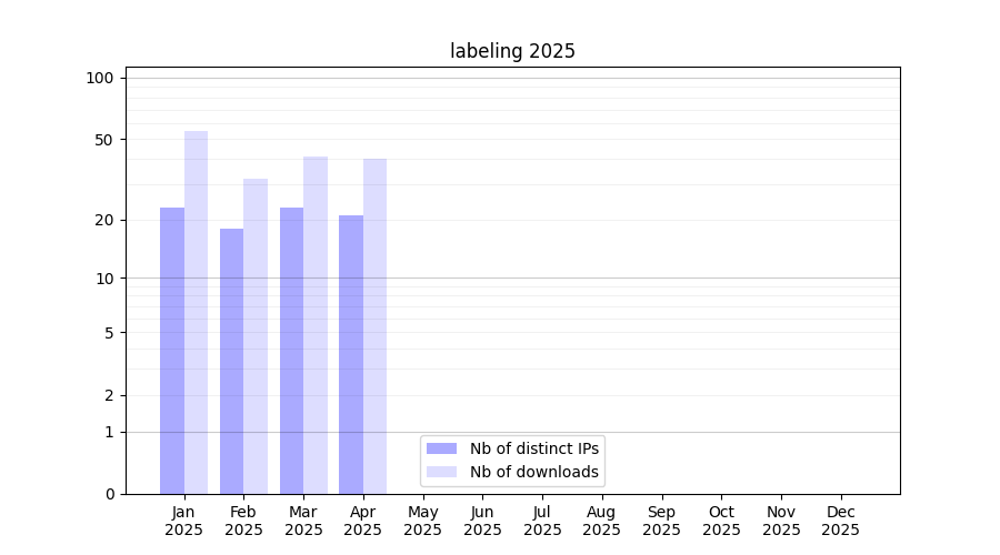 Number of downloads for software package labeling, year by year, from 2025 back to 2014 (years with no downloads are omitted):