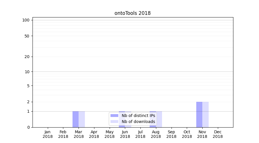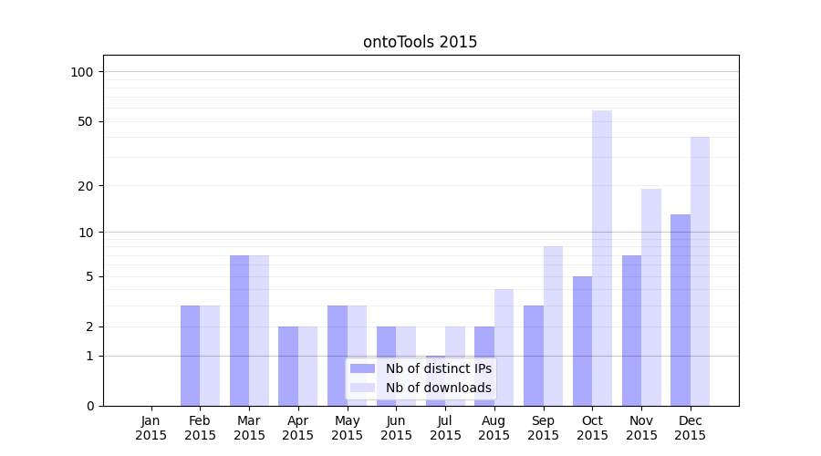 Number of downloads for software package ontoTools, year by year, from 2025 back to 2014 (years with no downloads are omitted):