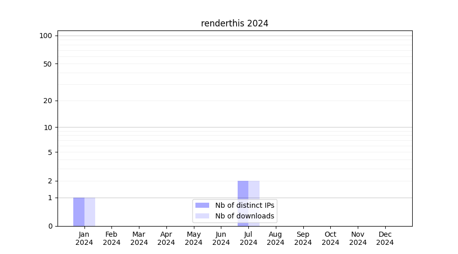 Number of downloads for software package renderthis, year by year, from 2025 back to 2014 (years with no downloads are omitted):