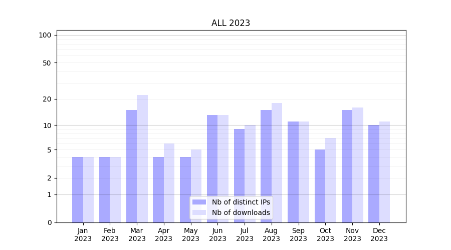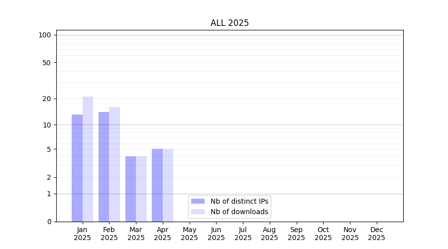 Number of downloads for annotation package ALL, year by year, from 2025 back to 2014 (years with no downloads are omitted):