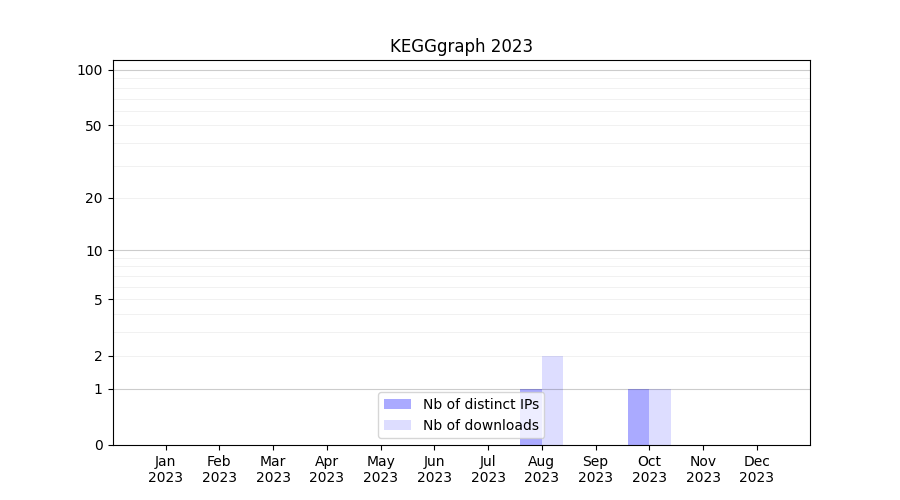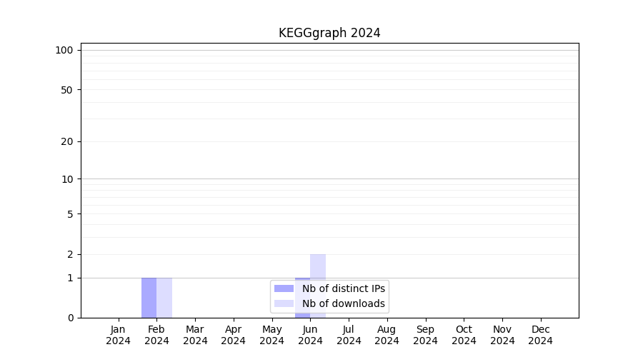 Number of downloads for annotation package KEGGgraph, year by year, from 2025 back to 2014 (years with no downloads are omitted):