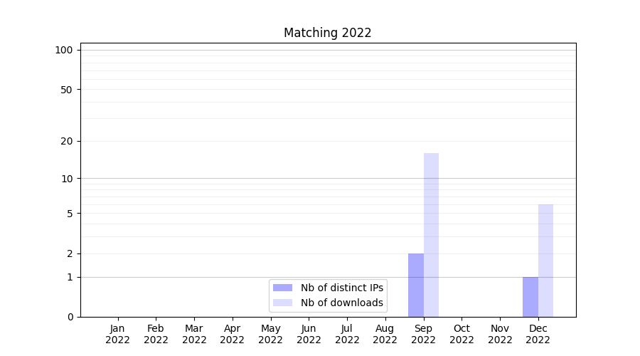 Number of downloads for annotation package Matching, year by year, from 2025 back to 2014 (years with no downloads are omitted):