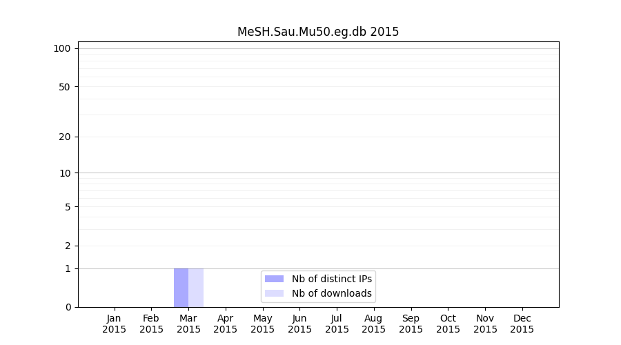 Number of downloads for annotation package MeSH.Sau.Mu50.eg.db, year by year, from 2025 back to 2014 (years with no downloads are omitted):