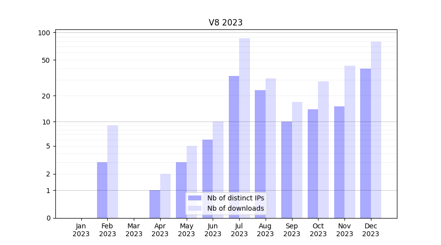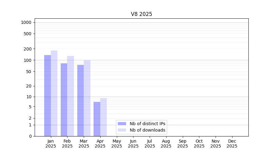 Number of downloads for annotation package V8, year by year, from 2025 back to 2014 (years with no downloads are omitted):