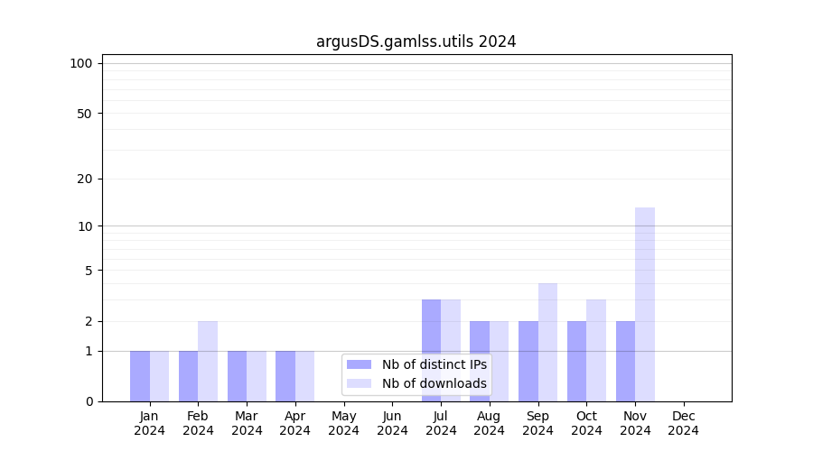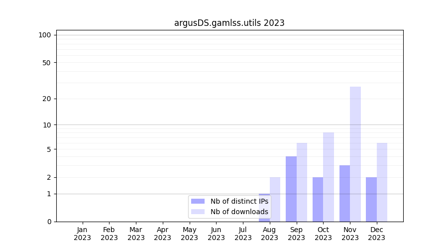 Number of downloads for annotation package argusDS.gamlss.utils, year by year, from 2025 back to 2014 (years with no downloads are omitted):