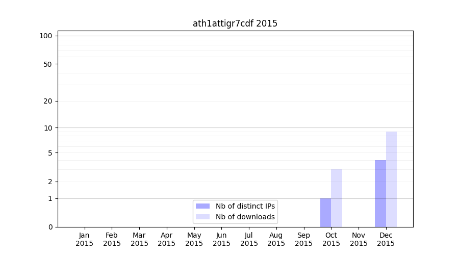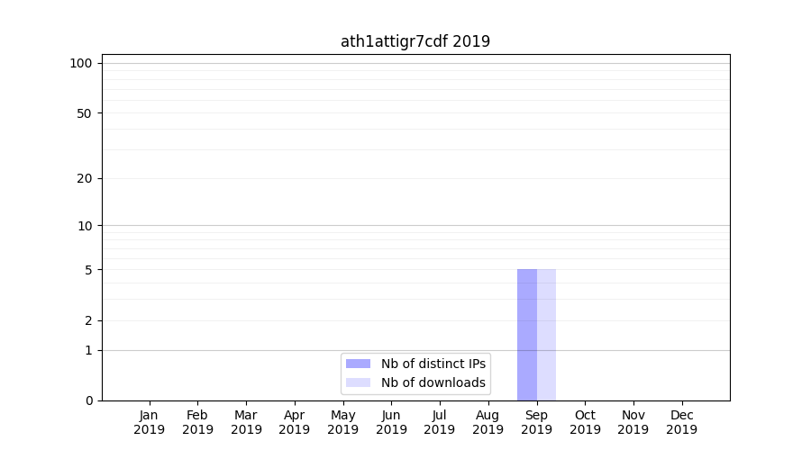 Number of downloads for annotation package ath1attigr7cdf, year by year, from 2025 back to 2014 (years with no downloads are omitted):