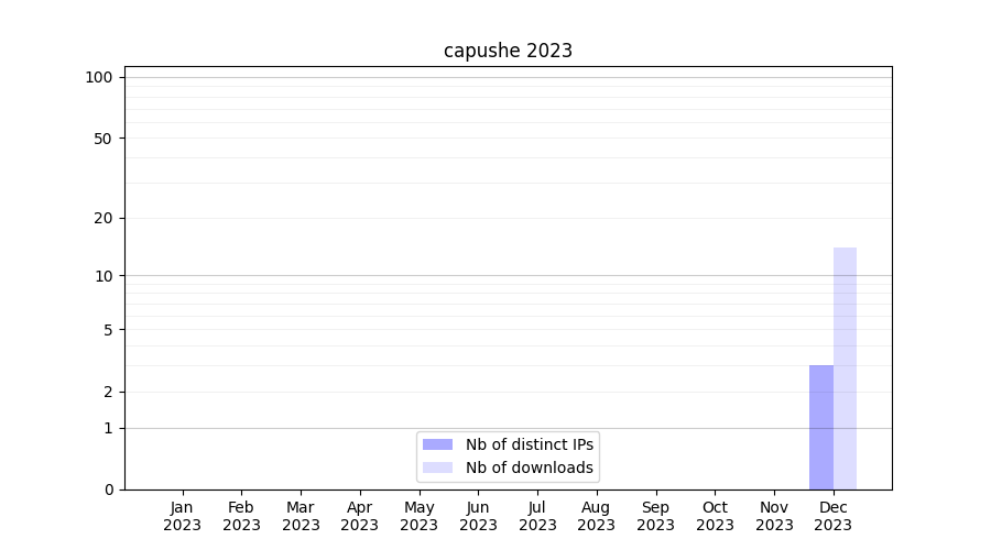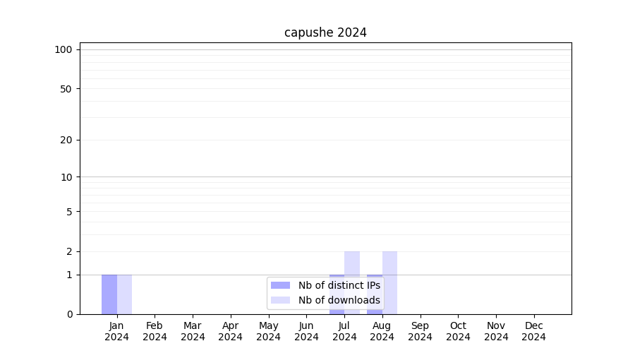 Number of downloads for annotation package capushe, year by year, from 2025 back to 2014 (years with no downloads are omitted):