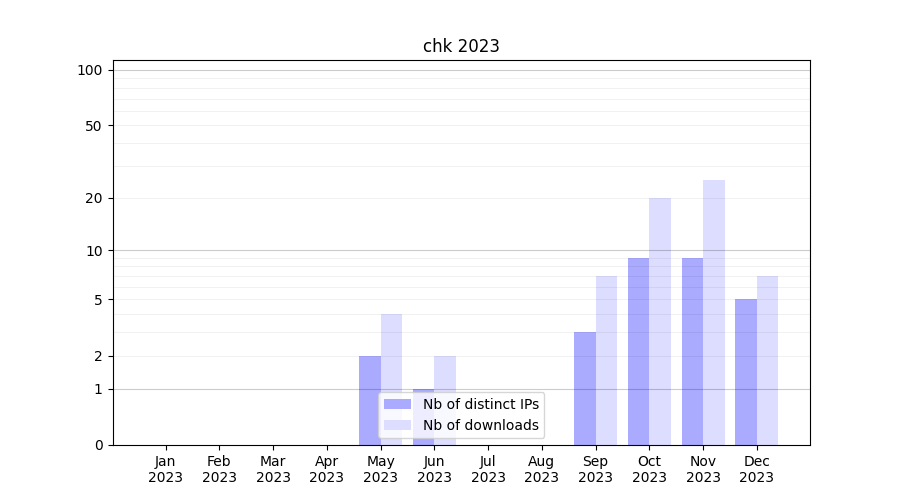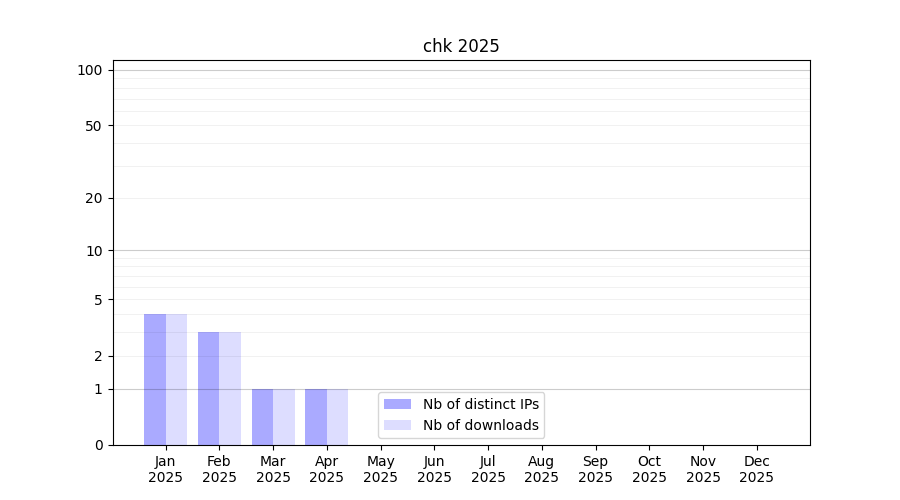 Number of downloads for annotation package chk, year by year, from 2025 back to 2014 (years with no downloads are omitted):