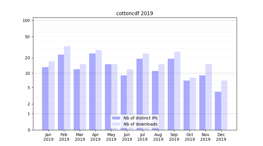 | Month | Nb of distinct IPs | Nb of downloads |