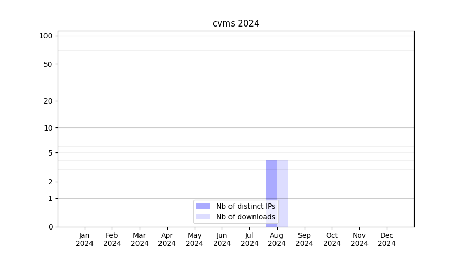 Number of downloads for annotation package cvms, year by year, from 2025 back to 2014 (years with no downloads are omitted):