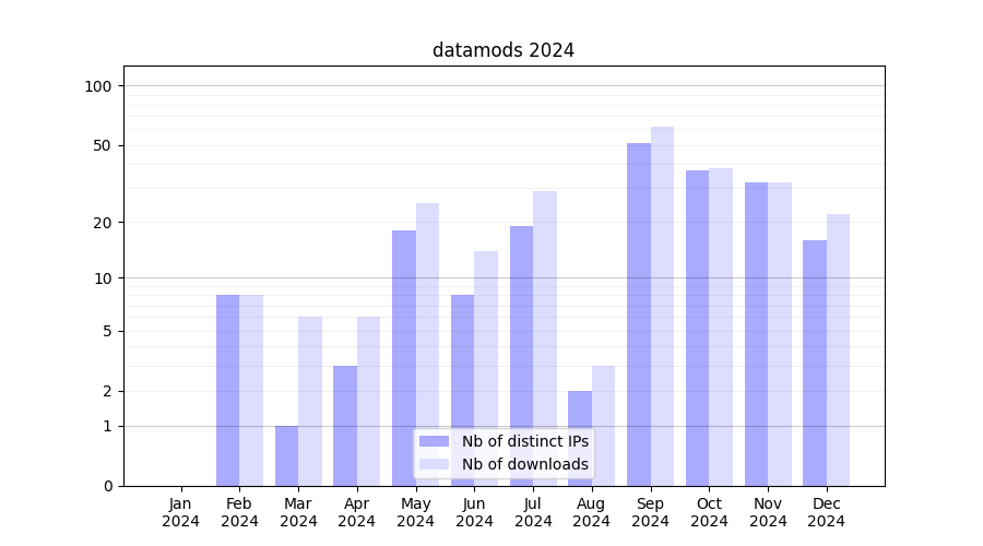 | Month | Nb of distinct IPs | Nb of downloads |