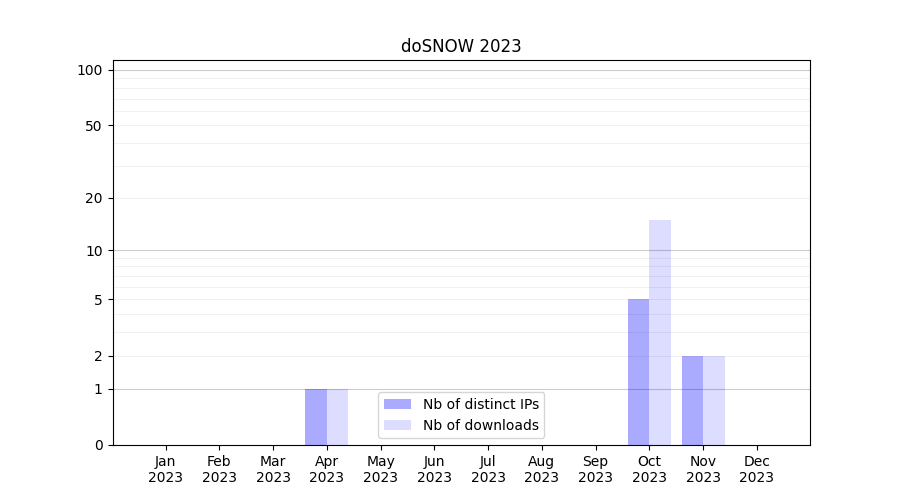 Number of downloads for annotation package doSNOW, year by year, from 2025 back to 2014 (years with no downloads are omitted):