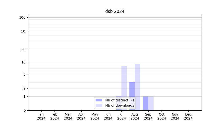 Number of downloads for annotation package dsb, year by year, from 2025 back to 2014 (years with no downloads are omitted):