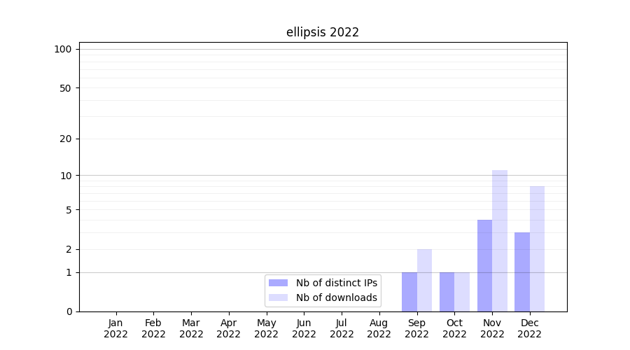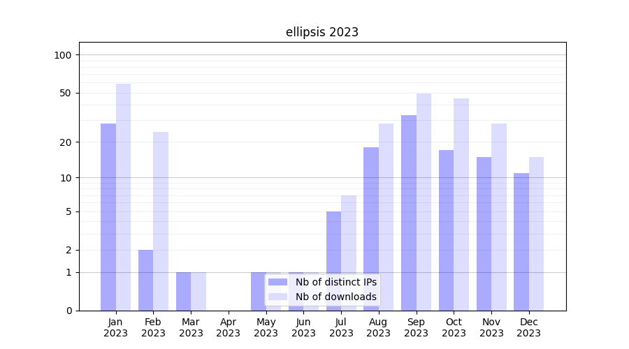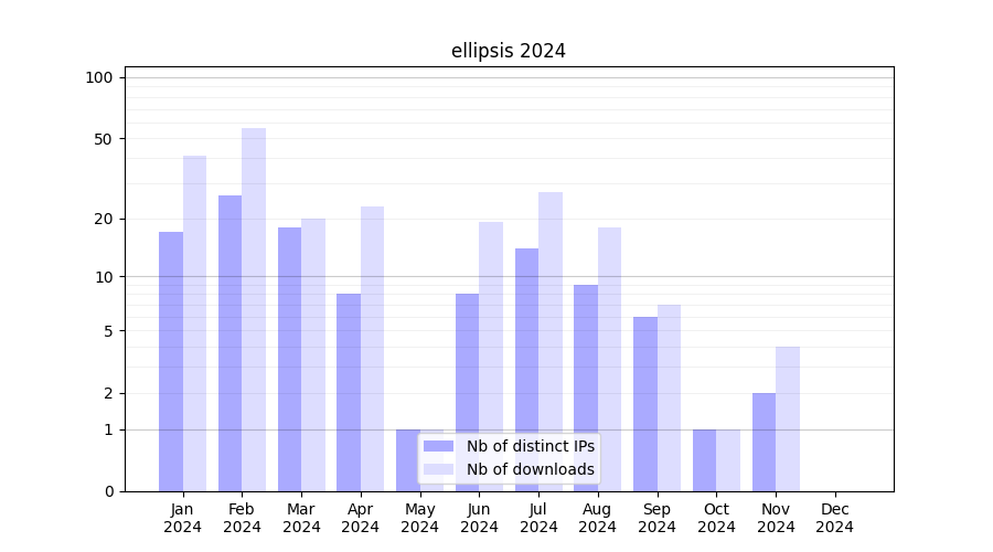 Number of downloads for annotation package ellipsis, year by year, from 2025 back to 2014 (years with no downloads are omitted):