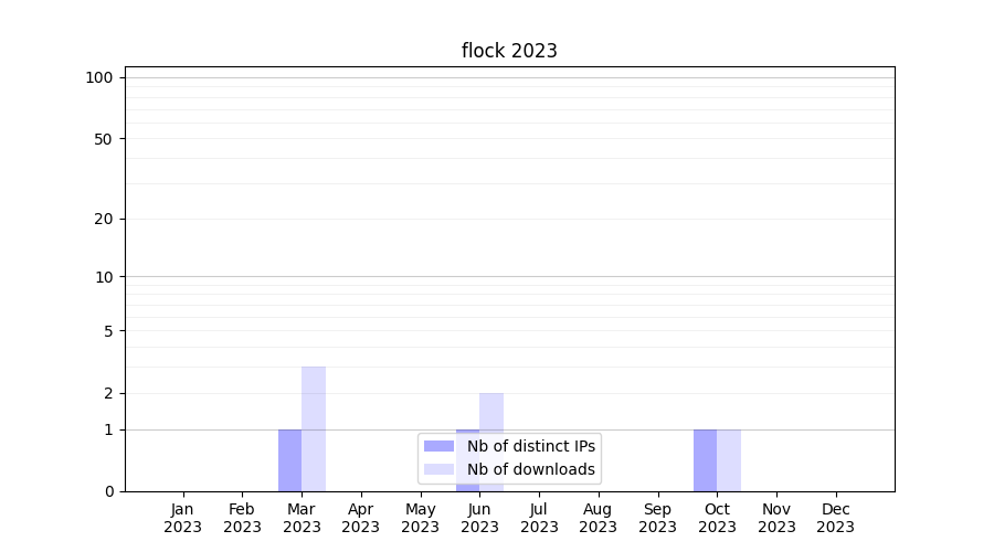 Number of downloads for annotation package flock, year by year, from 2025 back to 2014 (years with no downloads are omitted):