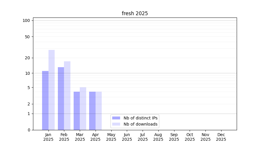 Number of downloads for annotation package fresh, year by year, from 2025 back to 2014 (years with no downloads are omitted):