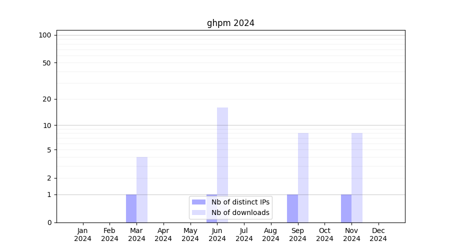 Number of downloads for annotation package ghpm, year by year, from 2025 back to 2014 (years with no downloads are omitted):